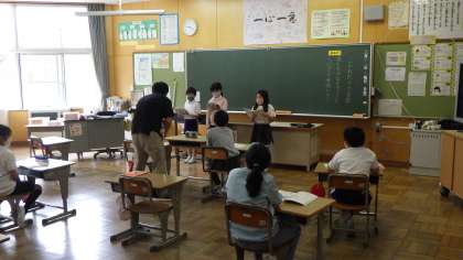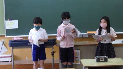 4年生の国語の授業です。教科書の音読発表会をしました。