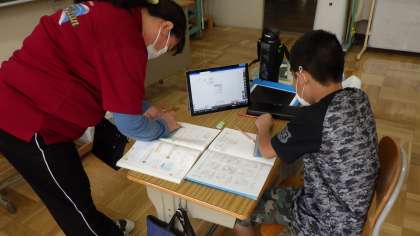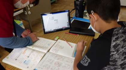さちのみ学級の算数の授業です。デジタル教科書をタブレットで使いながらの授業です。