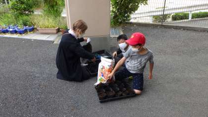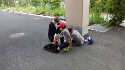 3年生から総合学習が始まります。大豆の栽培をします。観察してノートに書いてから、大豆を植える準備をしました。