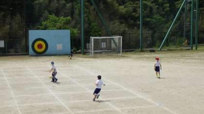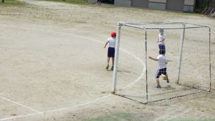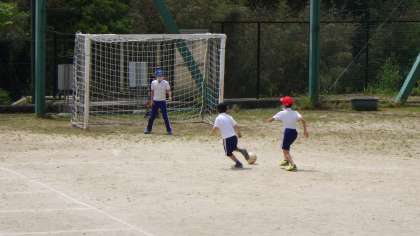 なかよしタイムです。今日は、少し暑いですが、元気いっぱいサッカーをしています。運動場を4人で貸し切り状態でした。