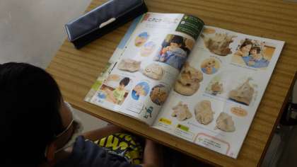 図工の学習で、「にぎにぎねんど」の作り方を聞きました。