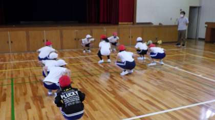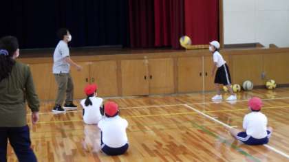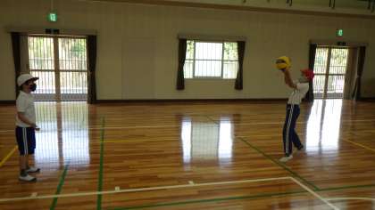 3,4年生の体育の授業で、バレーボールのレシーブの練習をしました。
