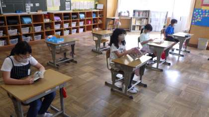 4年生の朝の時間は、読書タイムです。自分で選んだ本を集中して読みました。