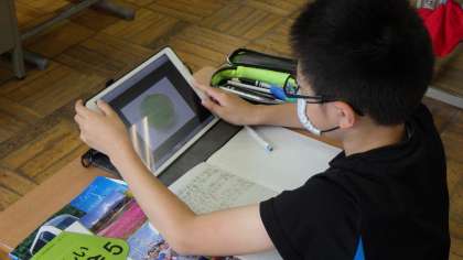 社会で「低い土地・高い土地」について、学習しました。タブレットで調べ学習をしました。