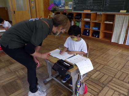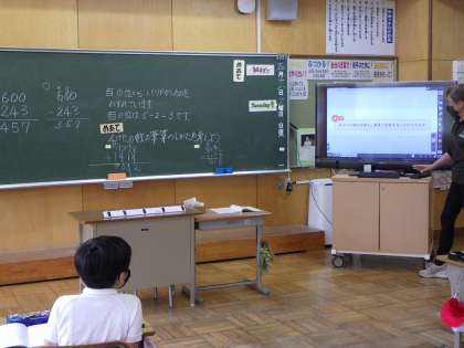 算数科で筆算の勉強をしました。たし算の繰り上がりとひき算の繰り下がりに気をつけて、ていねいに計算する3年生でした。