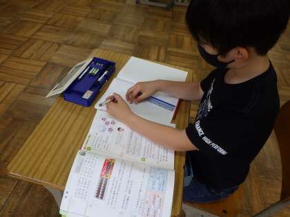 3年生の算数科では、わり算とひき算、たし算を組み合わせて計算をしました。どんな方法があるのかなあと考えて、黒板に一人一人発表しました。考えるのって楽しいですね。