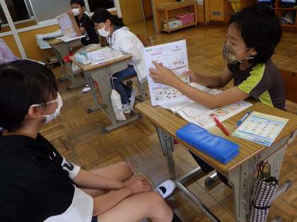 3つの仲間で分けられた栄養素。6年生は自分でメニューを選んで献立作りをしました。友達に紹介する中で、比較し、さらによりよい献立を考えていく子供たちです。ぜひ、お休みの日に実際に作ってみてね。
