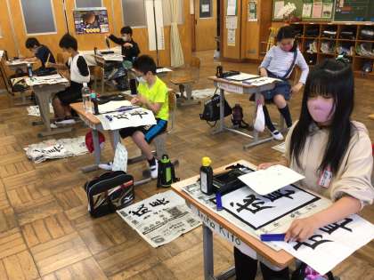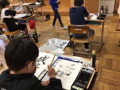 静かな教室で集中しながら、毛筆の練習をしていました。