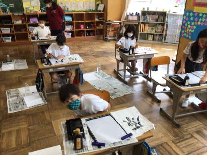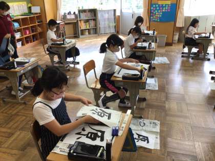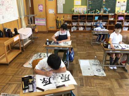 書写の時間に「原」の清書をしました。左はらいが、少し難しそうでした。
