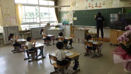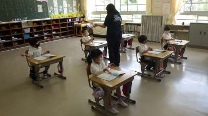 しろくまのジェンカに合わせて、カスタネットをたたきました。