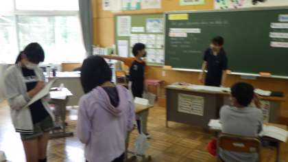クラスの友達に英語で自分の家での生活について話しました。