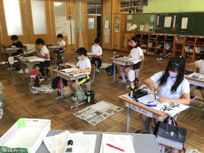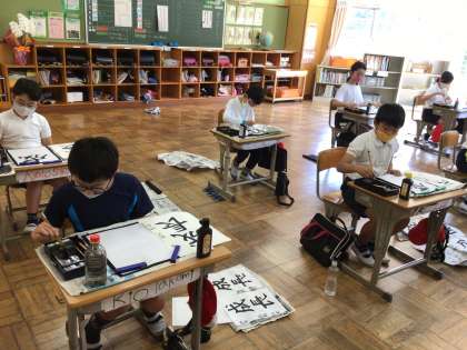 「成長」の清書をしました。元気いっぱい、力強く書けました。