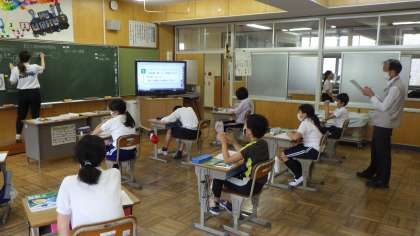 速さと時間、距離の計算の学習をしました。また、授業アドバイザーの先生に授業を見ていただきました。