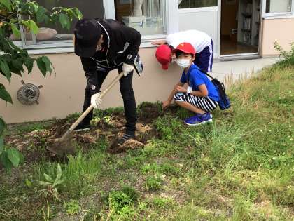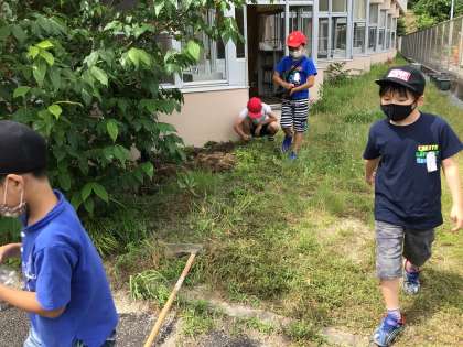 3年生がくわを持って歩いていきます。教室の前に落花生を植えるそうです。3年生の育てたい理科の力として、比較して共通点や差異点を見つけて問題を見出すことがあります。成長を観察する中で、どんな追究が始まるのか楽しみです。