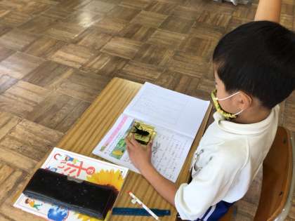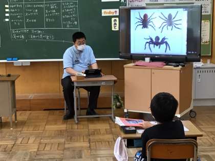 昆虫の体のつくりについて、教頭先生と一緒に勉強しました。実際に模型を手に取って観察したり、映像で確認したりして、昆虫の特徴をつかみました。どこかで本物を見かけたら、よく見てみてね。