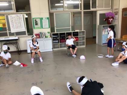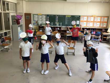 A班の発表後は、B班が感想を言います。「大きな声でよかった」「チームで工夫していた」「動きがわかりやすかった」とそれぞれの頑張りをたたえ合います。さらによかったのは、全員が自分の反省を自分の言葉で伝えたことです。「緊張した」「だけど、楽しかった」これまでお話の世界を楽しんできたことが伝わってきて、私まで嬉しくなりました。通りかかった教務主任の先生にも、「初めて聞いたお話だったけど、はきはきと伝えていたから、とってもわかりやすかったよ」とほめられた子供たち。最後は、みんなで記念写真。協力してやり切った笑顔がいいね。先生と一緒にしっかり勉強できたね。