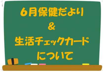6月の保健だより & 生活チェックカードについて 公開日 2021/06/17 更新日 2021/06/17 お知らせ 6月の保健だよりです。↓ 保健だより 6月号 来週から始まる「生活チェックカード」です。↓ 生活チェックカード 保健関係