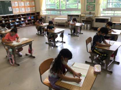 書写の時間に、原稿用紙の書き方について学びました。