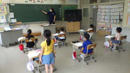 国語で「ことばあそび」をしました。しりとりで最初の文字と最後の文字から、ことばをみつける遊びをしました。