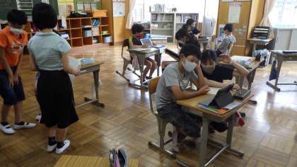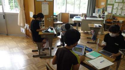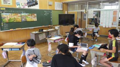 歴史の2つの資料(縄文時代・弥生時代)を見て、ちがいを見つけ、タブレットに自分でチェックする授業をしました。