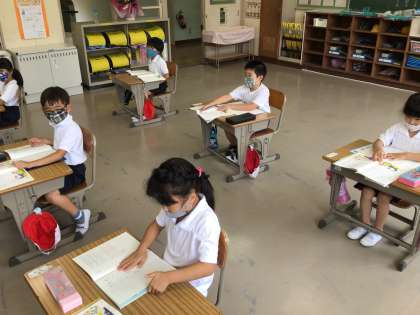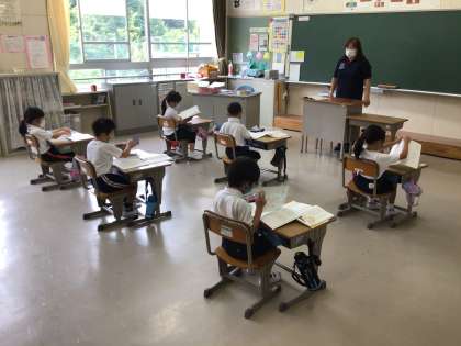 国語の時間に「あひるのあくび」というリズム歌で、ひらがなの練習をしました。