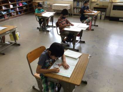 点の方向に気をつけて、いろいろな字の練習をしました。