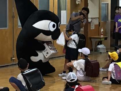 グランパス君は、あいさつ運動だけでなく、携帯電話等の回収もしてくれました。