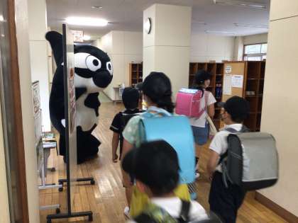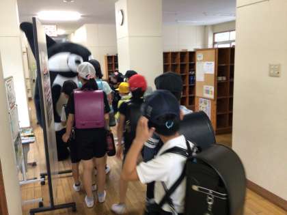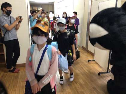 あいさつを忘れるくらい?グランパスくんに夢中のみんなでした。