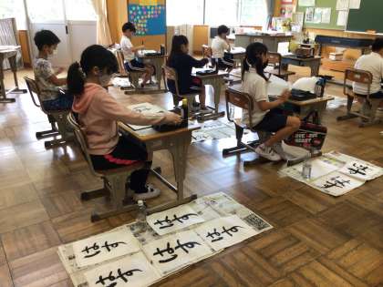 はす という文字を学びました。近くで見ていると、どうも、す の形がうまくとれないようです。力の入れ具合にこつがいりますね。集中して頑張って書いて、今日の一番を選ぶ子供たちでした。何度も書いて手で覚えていこうね。