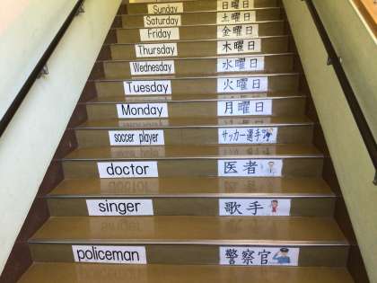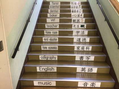 ちょボラの皆さんがあっという間に完成させてくださいました。3階まで続いています。早速図書館に行く子供たちが読んでいました。いいですね。圧巻!