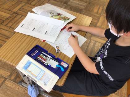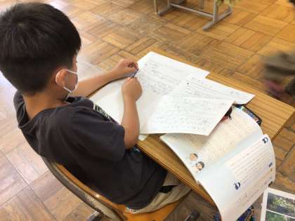 それぞれ自分の興味がある内容で調べ学習を進め、レポートにまとめることに挑戦中でした。書きたいことを決め、必要な情報を集めたり、整理したりする能力を育てています。