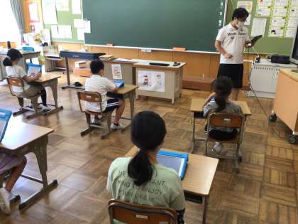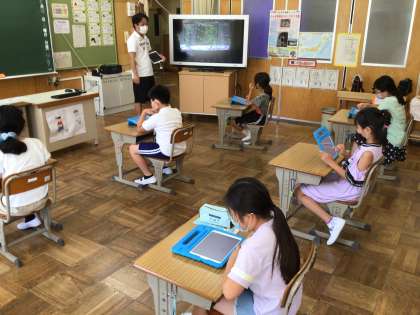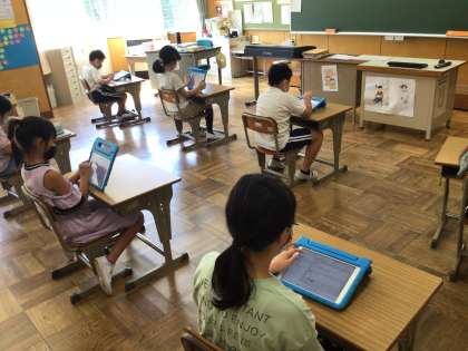 夏休み前集会で、タブレットを使うので、その準備をしました。