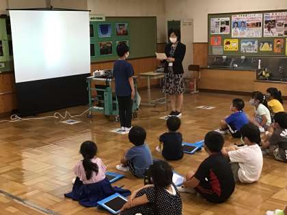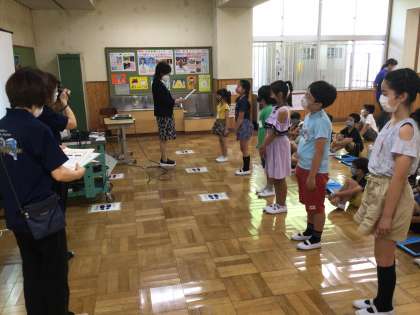 夏休み前集会で、「姿勢強調週間」で姿勢が良かった児童が表彰されました。また、「歯の標語」の表彰もありました。