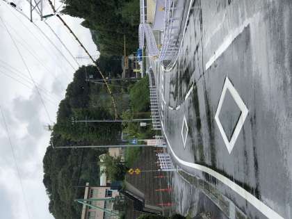 明日は出校日ですね。下校後は、おうちの方と一緒のオンライン出校日もあります。校長先生は残念ながら、明日出張で皆さんには会えませんが、担任の先生から一ヶ月ぶりの皆さんの様子を聞きますね。写真は学校前の道路の様子です。傘さし、マスクなしで、気をつけて1列登校して来てください。地域、保護者の皆様も見守りよろしくお願いします。