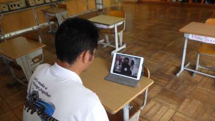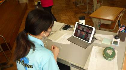 通常の出校日を行い下校した後、オンライン出校日を行いました。。カメラがオンになっていなかったり、うまくWIFIがつながっていなかったりしましたが、最終的に参加予定の子どもたち全員とつながることができました。