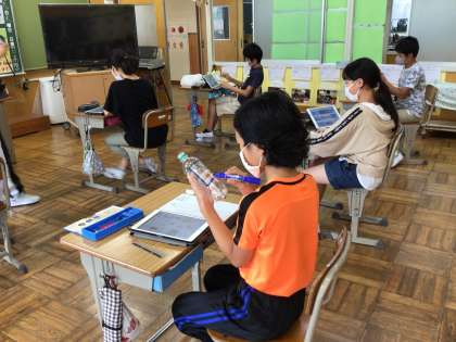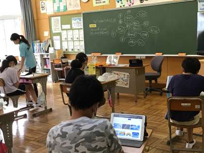 6年生がいち早く、交流館祭の光のタワーを作成開始しました。どんな言葉、どんな絵がみんなを勇気づけるのか、思考ツールを使って意見交換した後、タブレットでイラストなど検索し、オリジナルデザインを考えました。カラーペンを使った出来上がりが楽しみです。