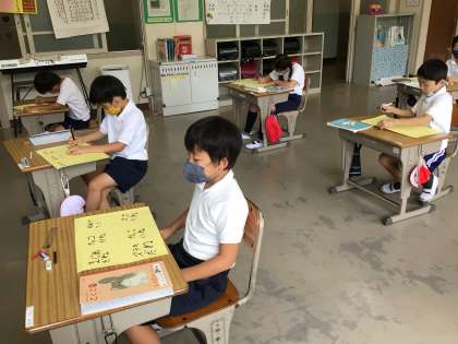 2年生の子供たちが何やら作っています。ふわふわ言葉集めです。言われてうれしい気持ちになる言葉をノートにたくさん集めました。ありがとう、あそぼう、いいね、すごいね、まだまだ、たくさんあります。それだけ心が豊かな証拠です。私には、ありがとうございましたを見せてくれました。確かにうれしくなります。一番うれしくなる言葉は、どれなの?と尋ねてみると、かっこいいね!でした。なるほど!
