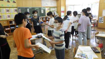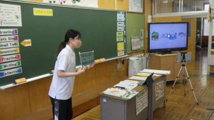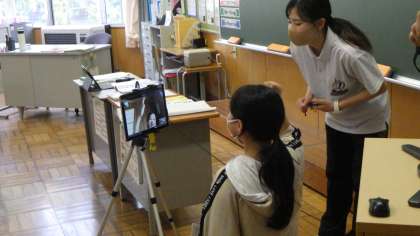英語の指導員の先生を迎えて、研究授業が行われました。6年生のみんなは、指導員の先生が授業を見られるということで、とても張り切って頑張っていました。また、お休みした子のためにオンラインで授業を行いました。
