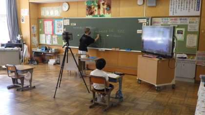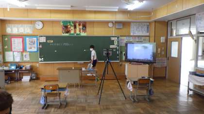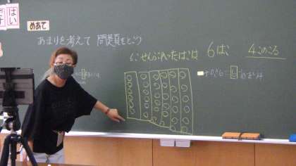 あまりあるわり算の問題を解きました。また、授業の様子をオンラインでお休みの児童に送りました。