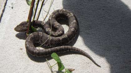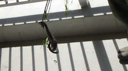 環境整備員の方が、草刈りの途中でマムシを見つけて、捕まえてくださいました。アオダイショウは、今年2匹捕まえましたが、マムシは初めてです。へびは危険です。へびを見かけたら、すぐ離れて、知らせてほしいと思います。
