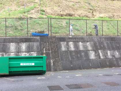 写真は急な雨の中、保護者の方がやりやすいように、かなりの作業を進めてくださっている校内整備員のお二人です。感謝です。