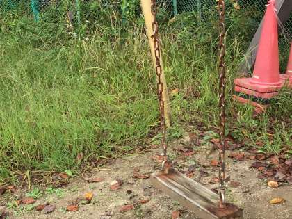 写真は、校舎から移動したヤママユ。どこにいるのか、ズームで見てください。