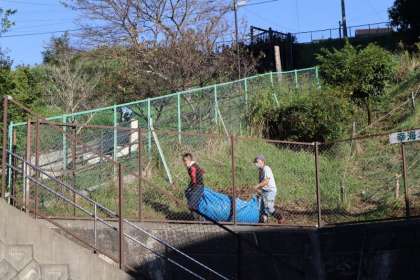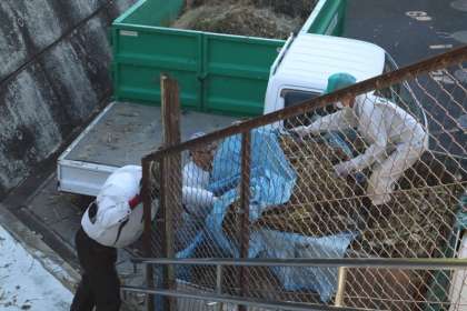 坂の狭い場所の刈り取り作業は大変そうでした。刈った草をビニールシートにくるんで、運ぶという、ビニールシートの使い方が絶妙でした。