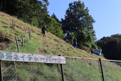 ネイチャーパークはとにかく坂が急です。校内整備員のお二人が、ざあざあ降りの日も草を刈り続けてくださったとは言え、足場の悪い坂での作業はとても大変そうでした。加速がついてフェンスにぶつかりそうになりながら、草を運んでくださいました。思わず、「かっこいい」とつぶやいてしまいました!