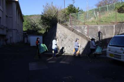 草集め隊の女性役員の皆様も、手に手に道具を持って上がって行かれました。