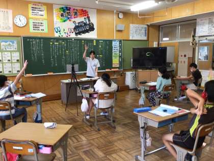 6年生は、学年で一番奥深い物語文「海のいのち」の学習をしていました。すでに終盤にさしかかっており、クエを殺さずにすんだのは、なぜかということを、文脈にそくして読み取っていました。複数の友達の発言により太一の成長が理解できた授業でした。とてもいいですね。読みの楽しさを読書でどんどん味わって欲しいです。