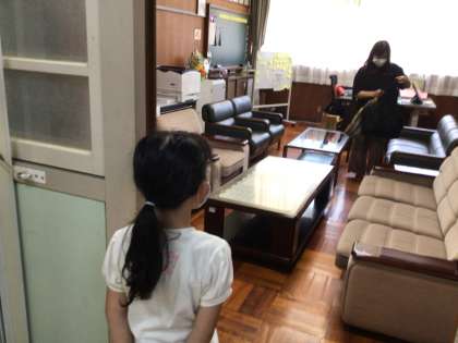 学級の代表の皆さんが校長室までお迎えに来てくれました。廊下で、あいさつの練習もしました。ばっちりでしたよ。