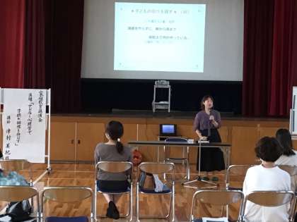 家庭教育講演会では、「アドラー心理学で子どもの個性を伸ばす」という演題でお話をしていただきました。全校の保護者の方に聞いていただけるとよい内容で、和気あいあいとした1時間でした。