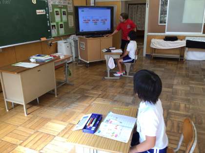 3年生は今年から外国語活動が授業としてスタートしています。担任の先生と一緒に気軽に話す姿を見て、英語に慣れ親しみ、身につけようとする様子がありました。