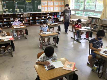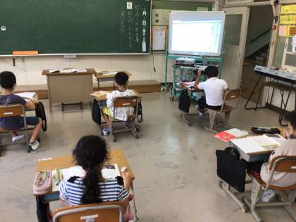 国語で「ビーバーの大工事」を学習しました。デジタル教科書の音読を聞きました。